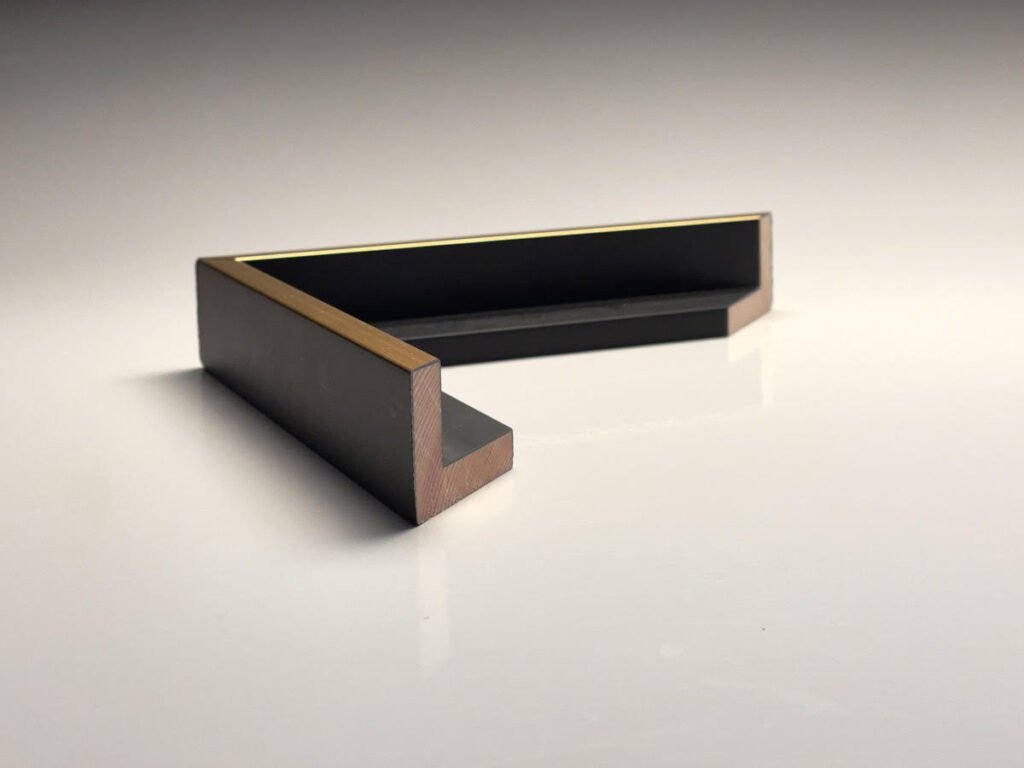 Beskrivning: Furulist, L-profil svart/guld. Pris per meter