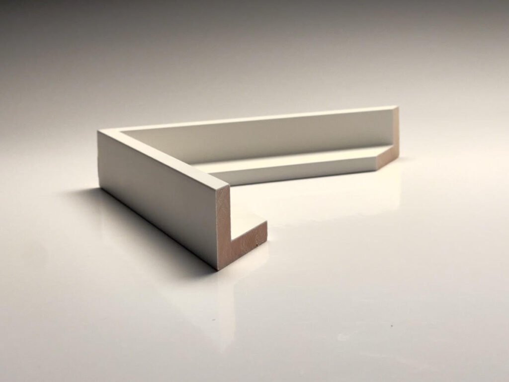 Beskrivning: Furulist, L-profil vit. Pris per meter